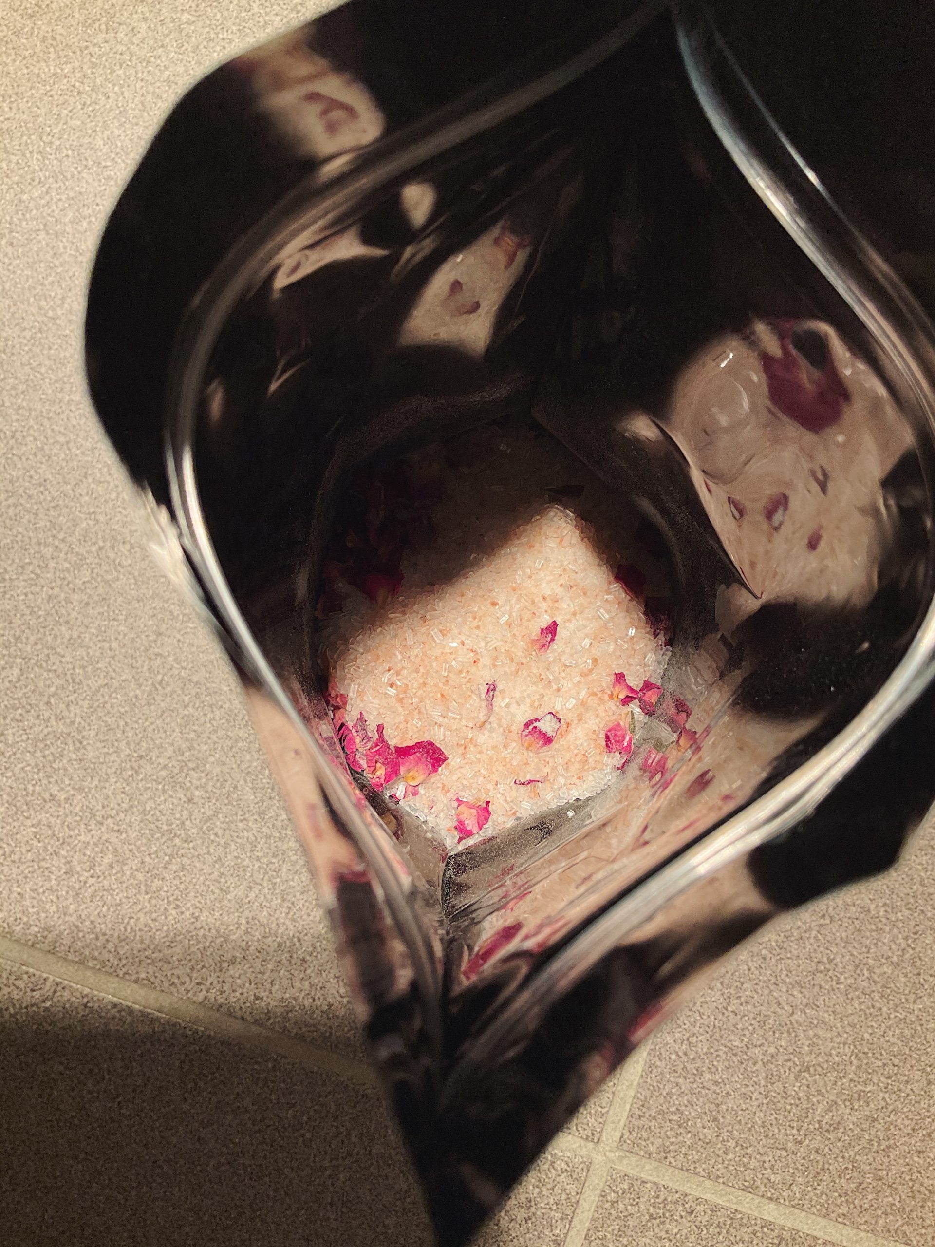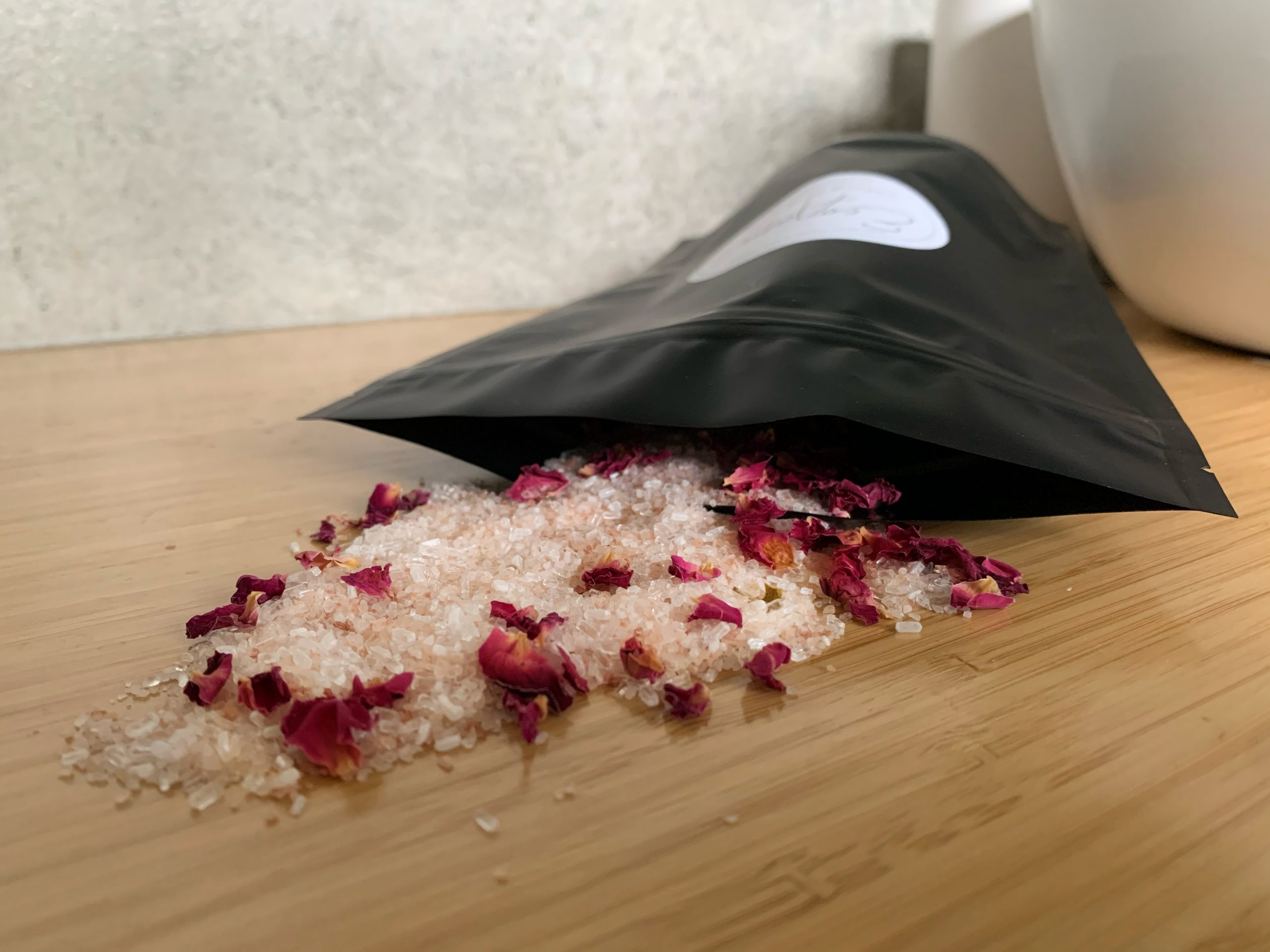 Ingredients: Magnesium salts, Himalayan salts, Bicarbonate Soda, Essential oils and Rose petals.